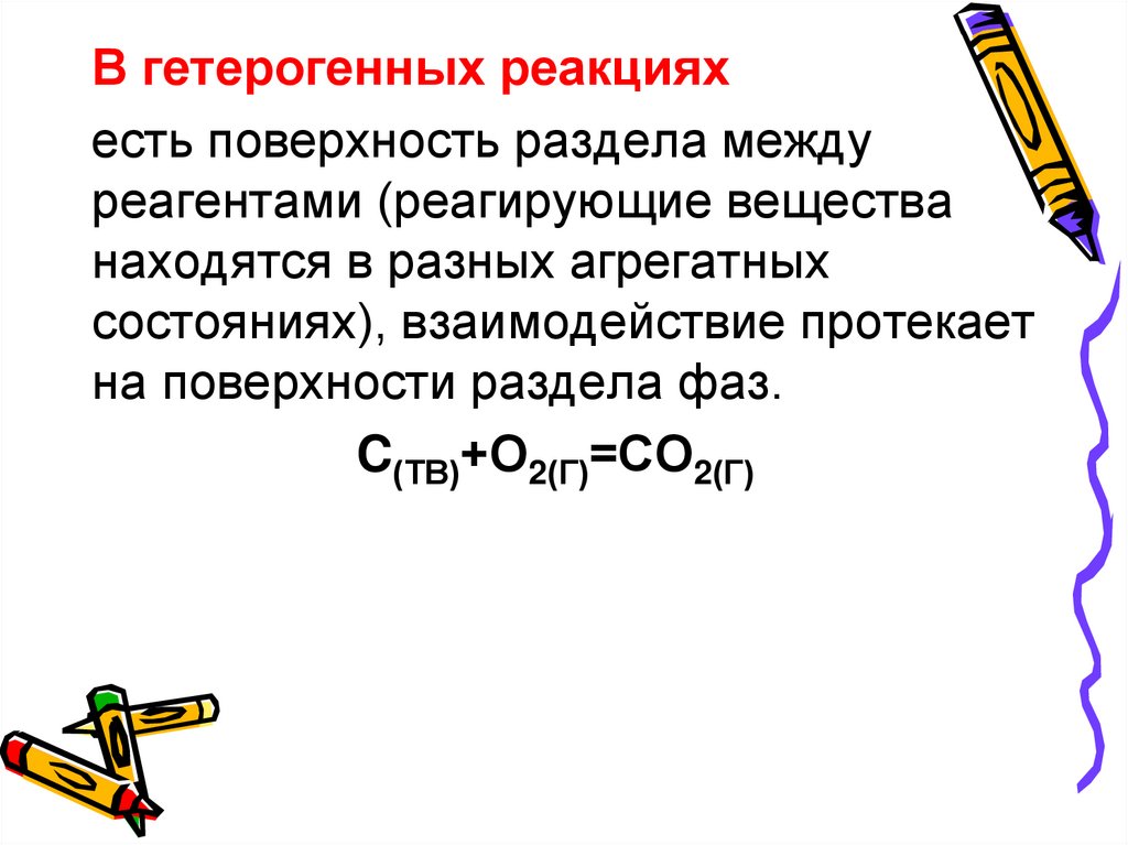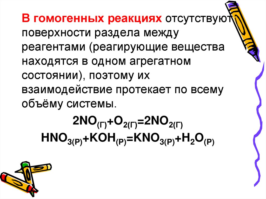 В гомогенных реакциях отсутствуютповерхности раздела между