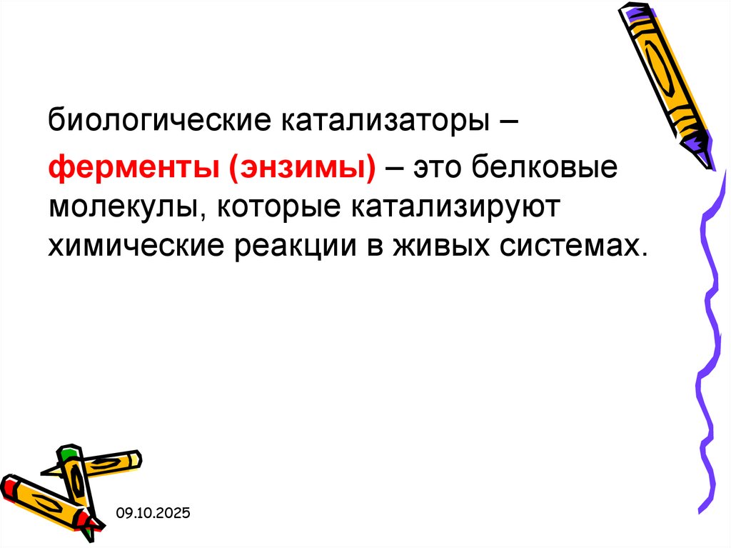 биологические катализаторы –ферменты (энзимы) – это белковые