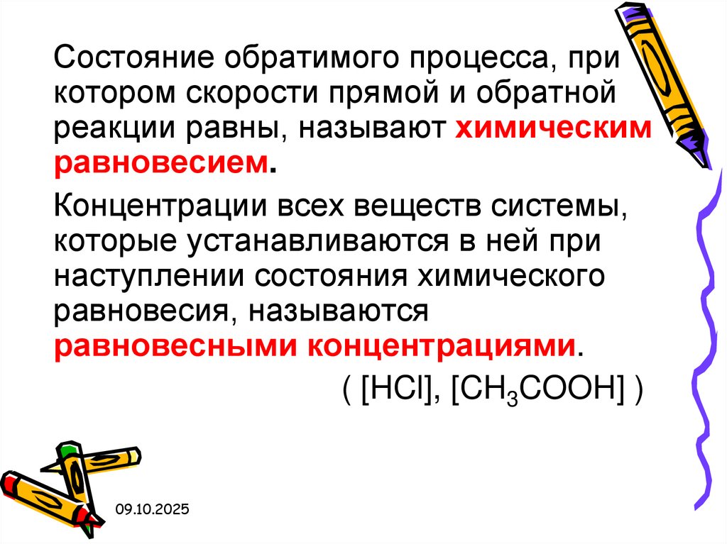 Состояние обратимого процесса, прикотором скорости прямой и обратной