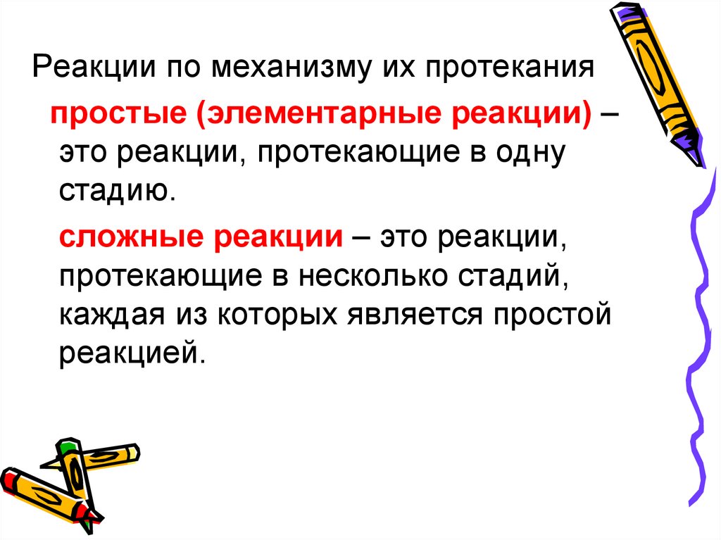 Реакции по механизму их протеканияпростые (элементарные реакции) –
