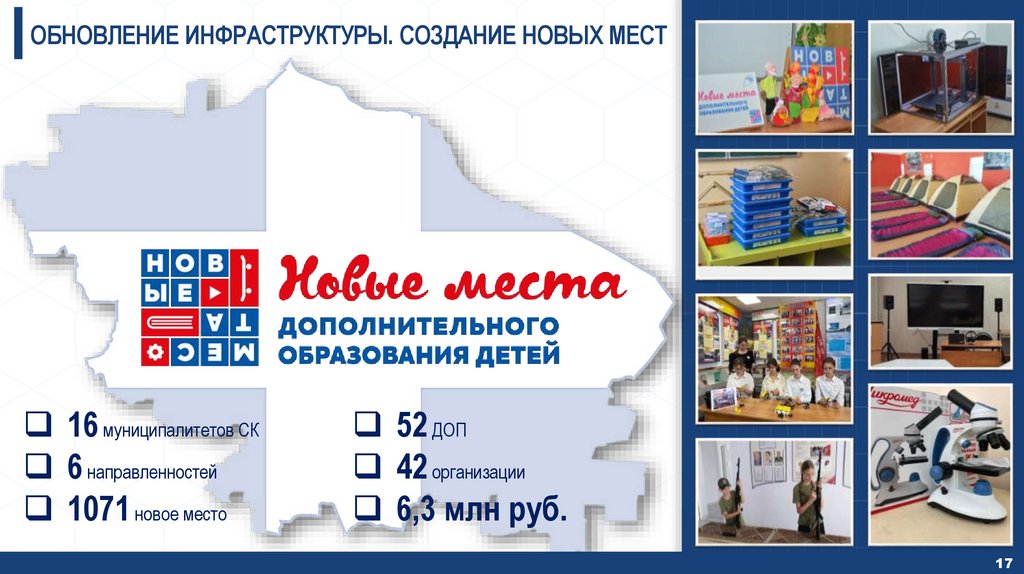 ОБНОВЛЕНИЕ ИНФРАСТРУКТУРЫ. СОЗДАНИЕ НОВЫХ МЕСТ16 муниципалитетов СК