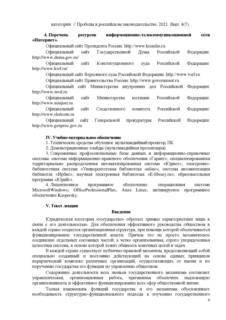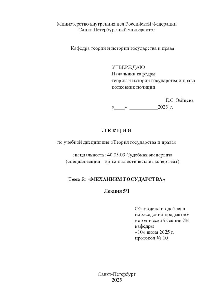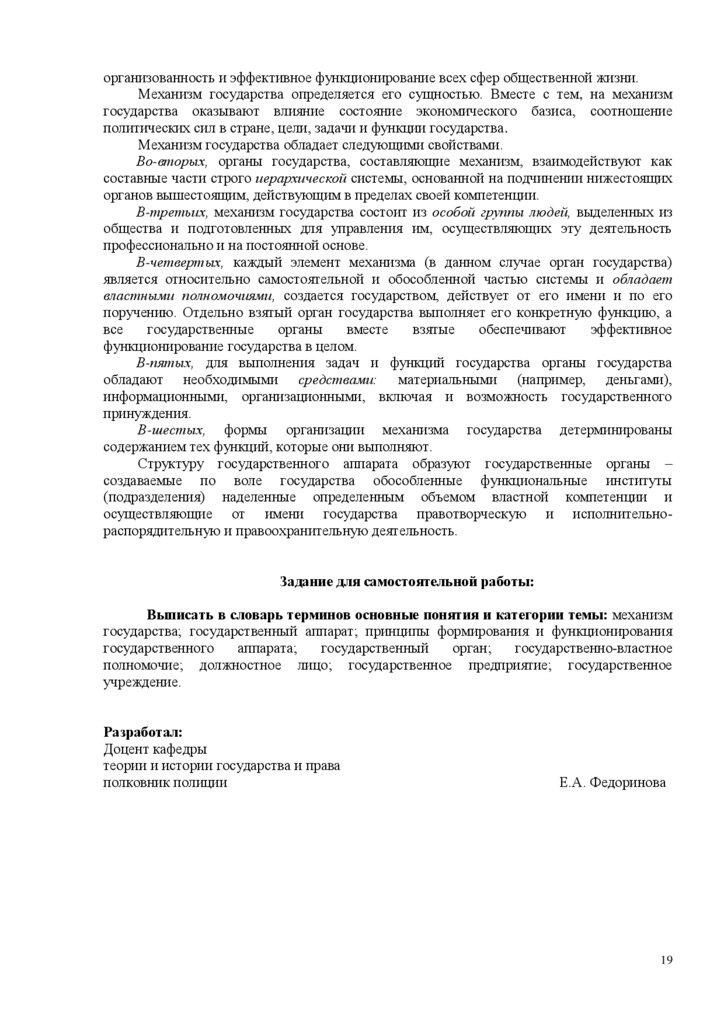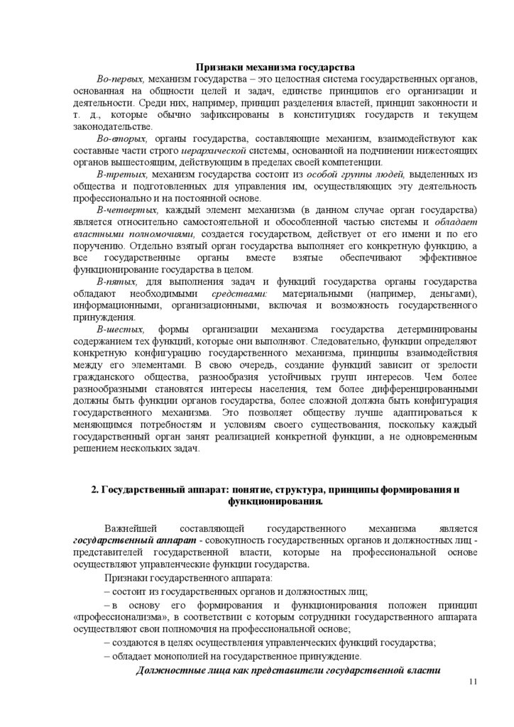 1. Понятие и структура механизма государства.