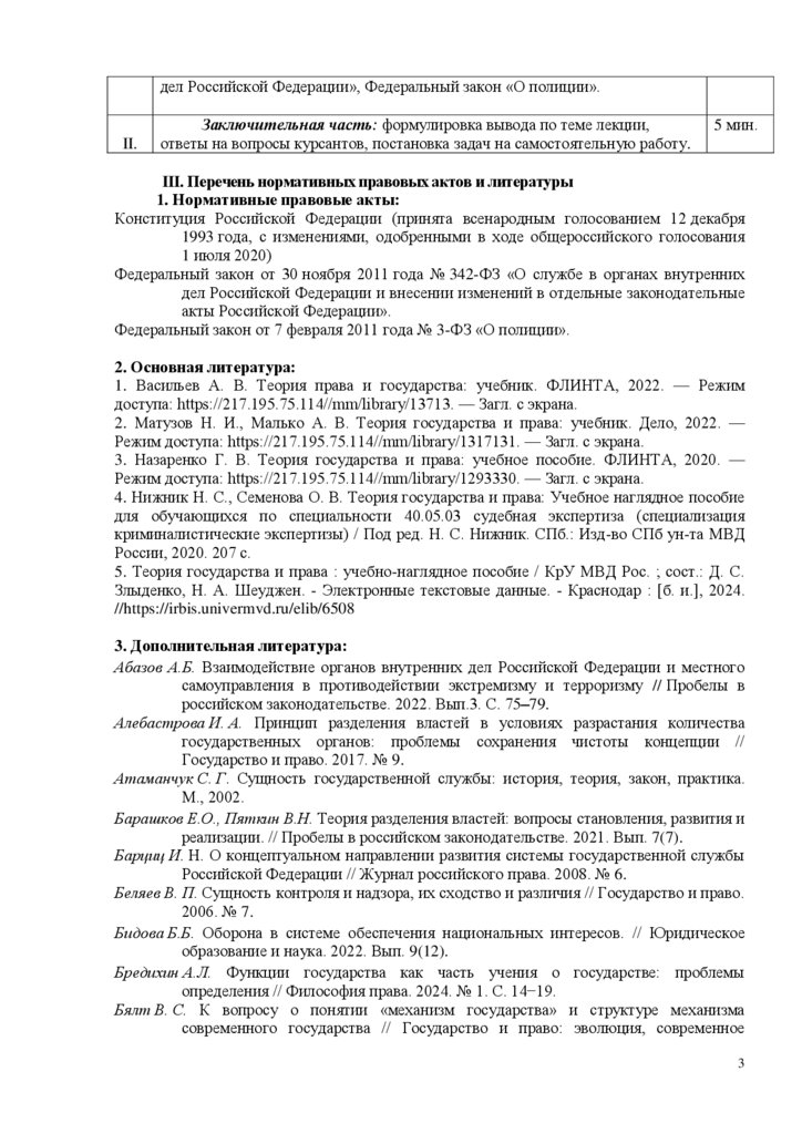 дел Российской Федерации», Федеральный закон «О полиции».II.