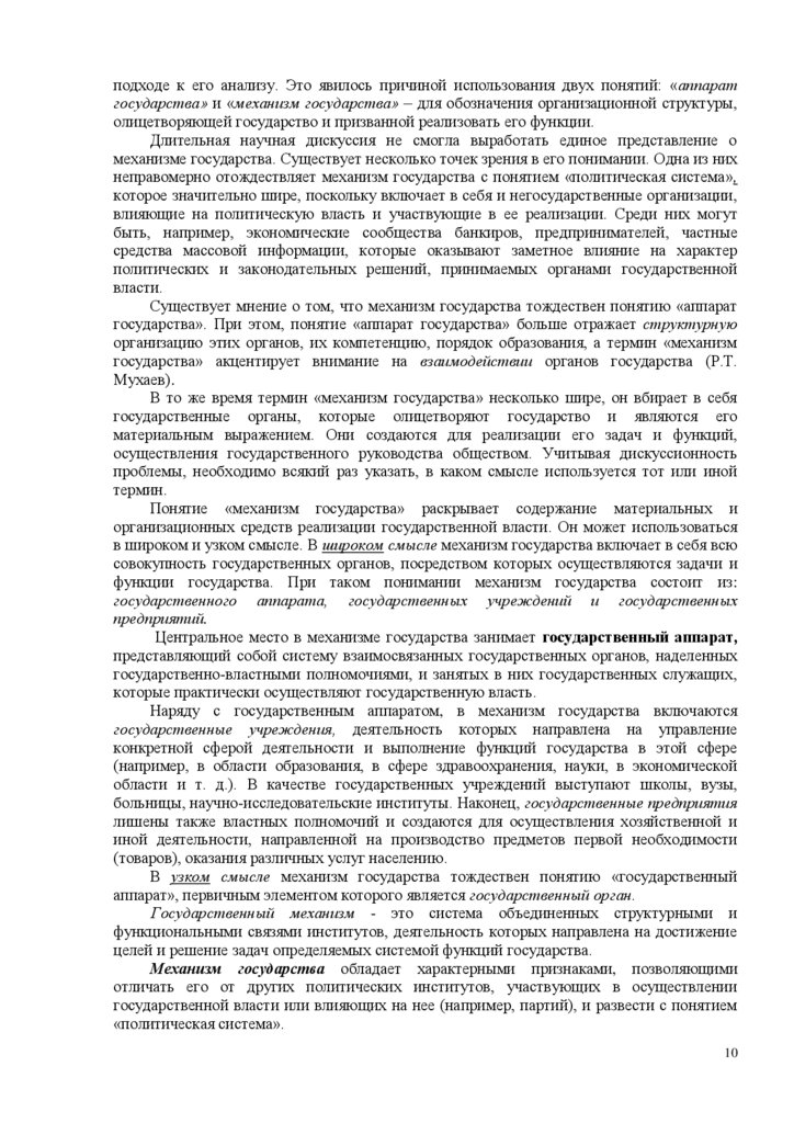 соотношения понятий «механизм государства» и «государственный