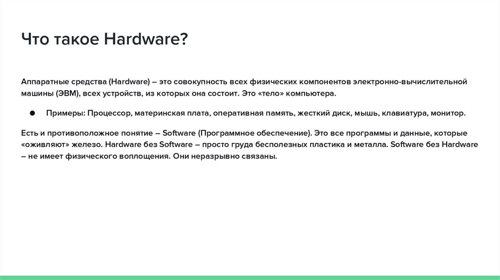 Что такое Hardware?Аппаратные средства (Hardware) – это совокупность всех физических компонентов электронно-вычислительной
