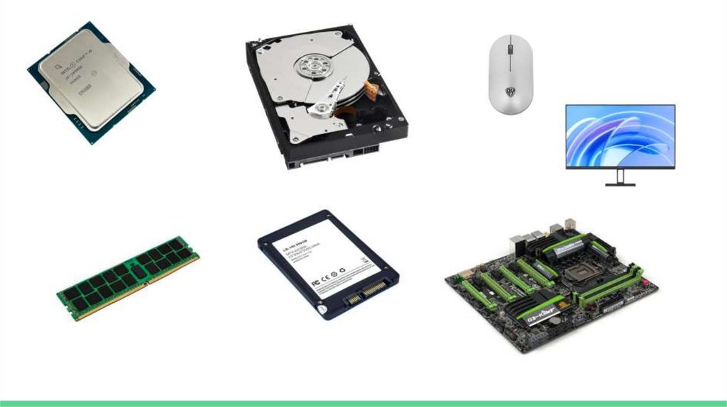 Примеры: Процессор, материнская плата, оперативная память, жесткий диск, мышь, клавиатура, монитор.