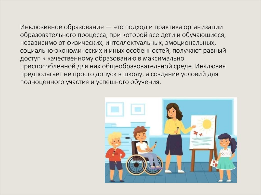 Инклюзивное образование — это подход и практика организацииобразовательного процесса, при которой все дети и обучающиеся,