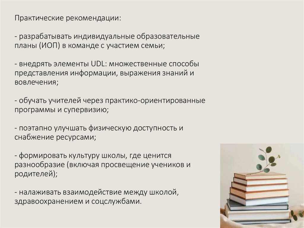 Практические рекомендации:- разрабатывать индивидуальные образовательные