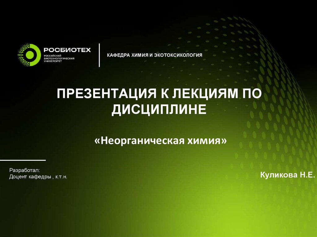 1. ПРЕЗЕНТАЦИЯ К ЛЕКЦИЯМ ПО ДИСЦИПЛИНЕ «Неорганическая химия»