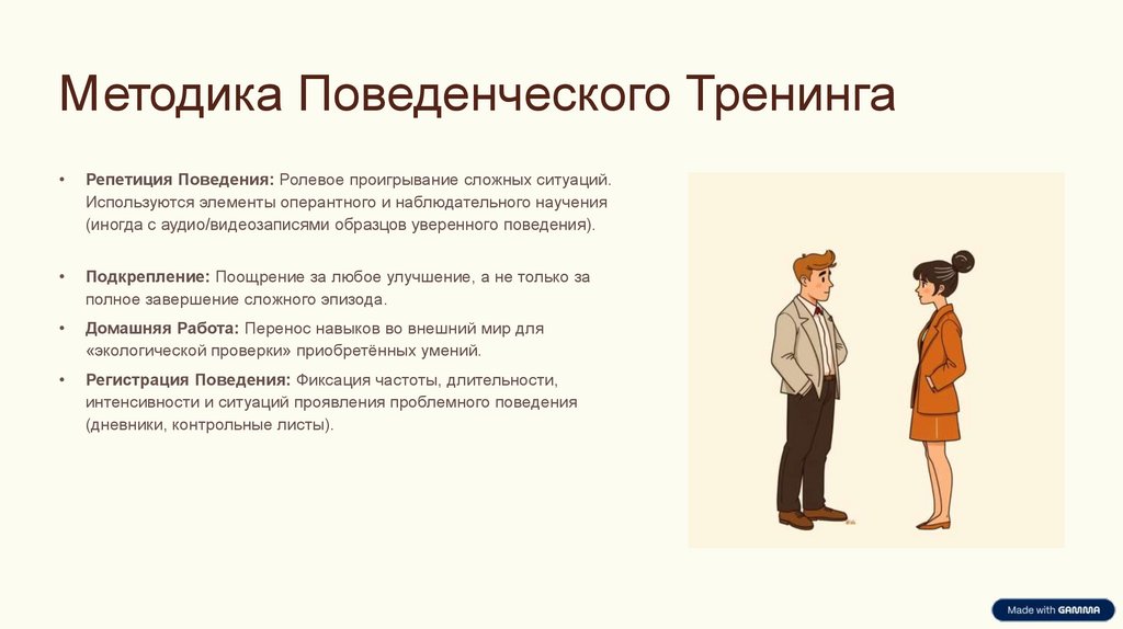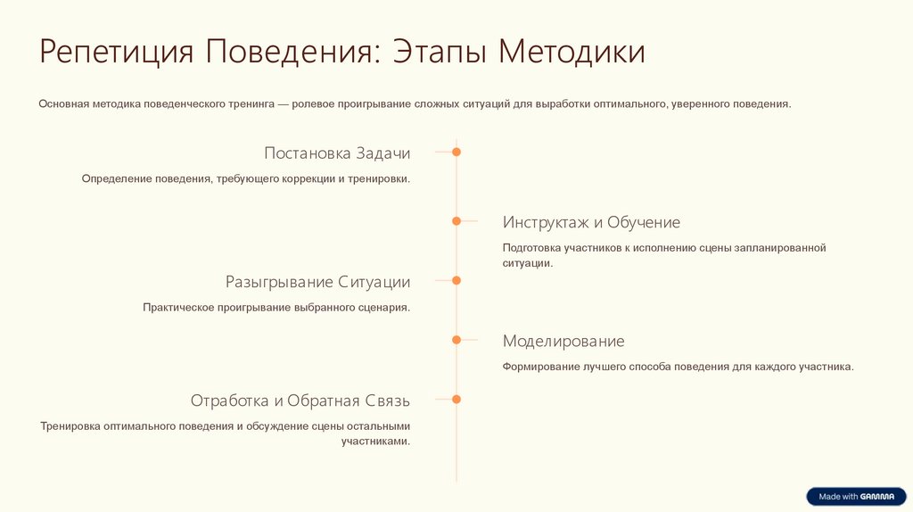 Репетиция Поведения: Этапы МетодикиОсновная методика поведенческого тренинга — ролевое проигрывание сложных ситуаций для выработки оптимального, уверенного поведения.
