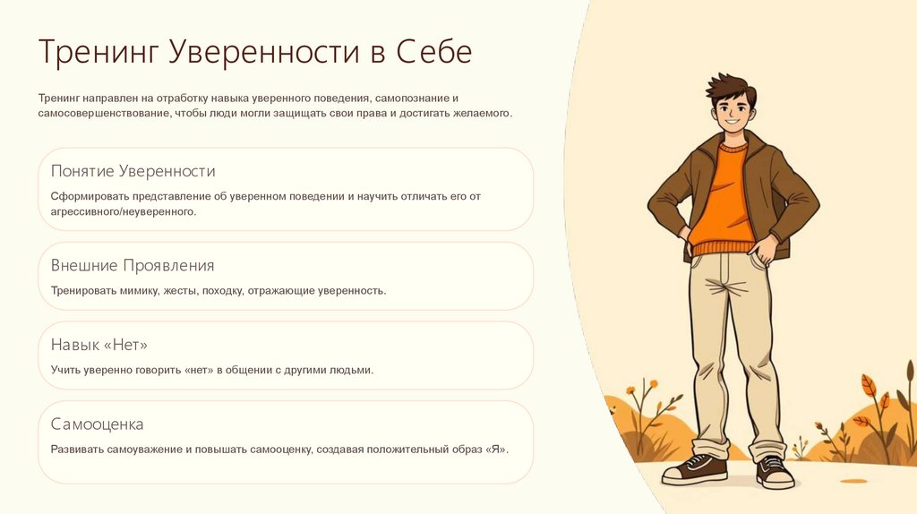 Тренинг Уверенности в СебеТренинг направлен на отработку навыка уверенного поведения, самопознание и