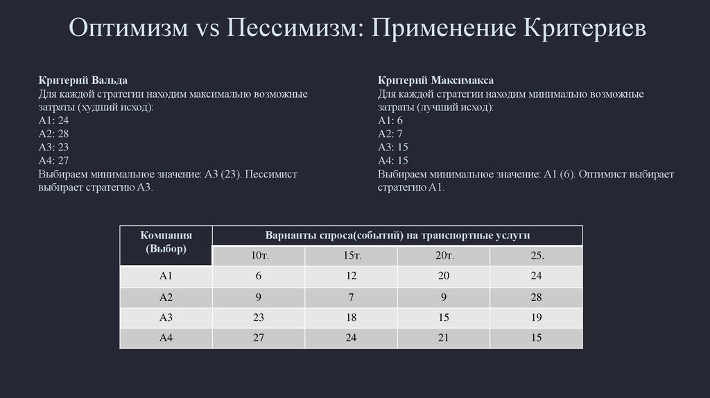 Оптимизм vs Пессимизм: Применение КритериевКритерий Вальда