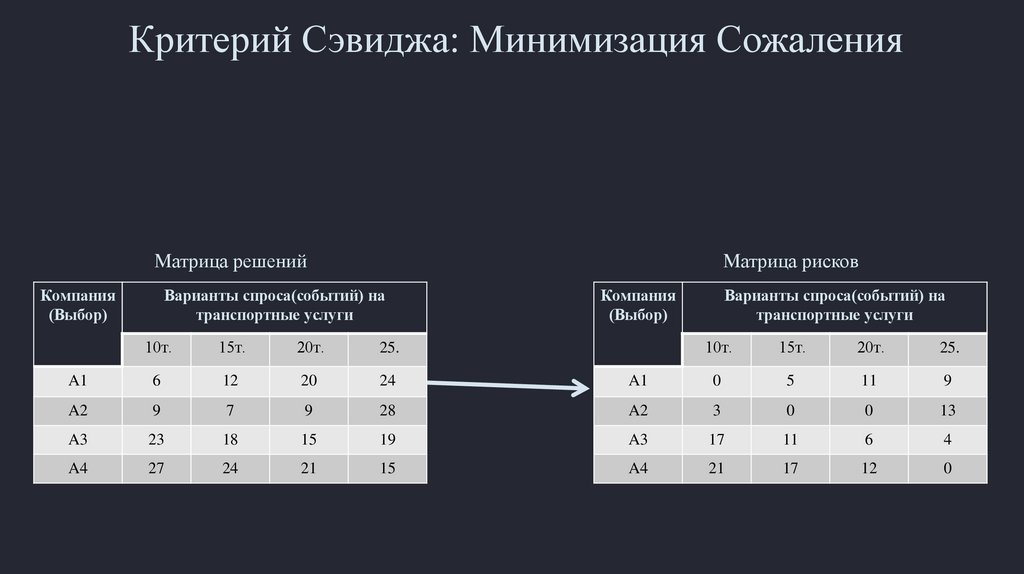 Критерий Сэвиджа: Минимизация СожаленияМатрица решений