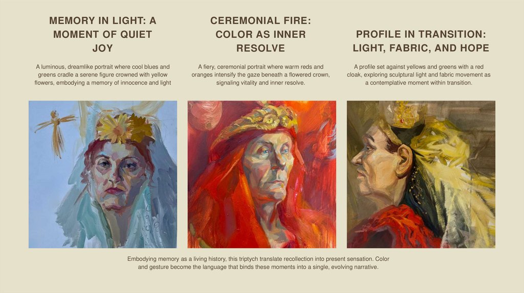 Embodying memory as a living history, this triptych translate recollection into present sensation. Color