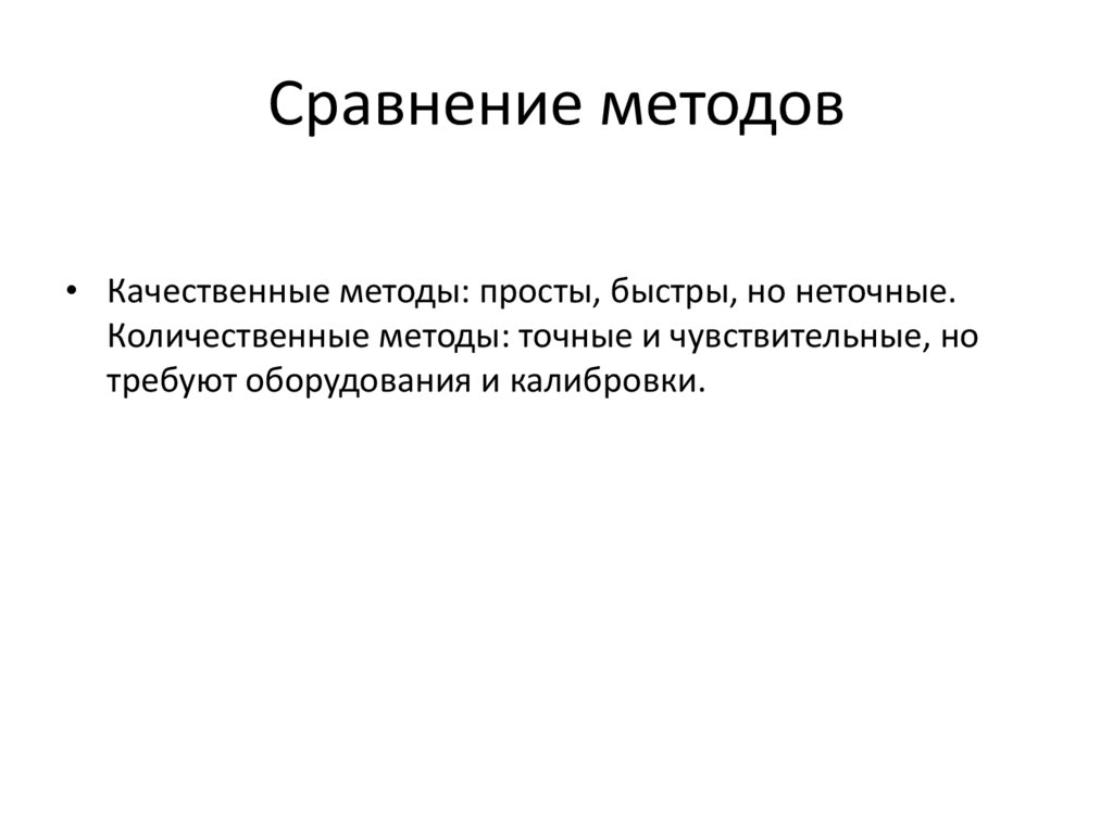 Сравнение методов• Качественные методы: просты, быстры, но неточные.
