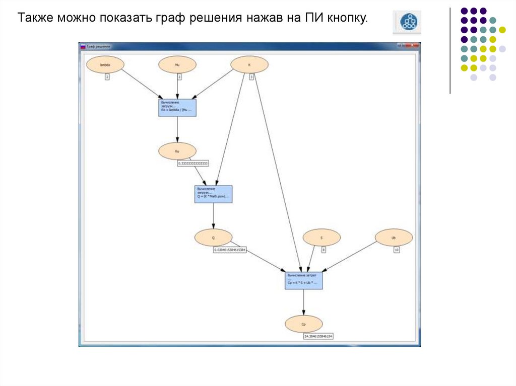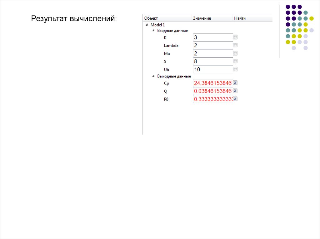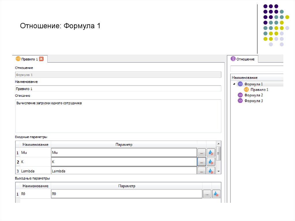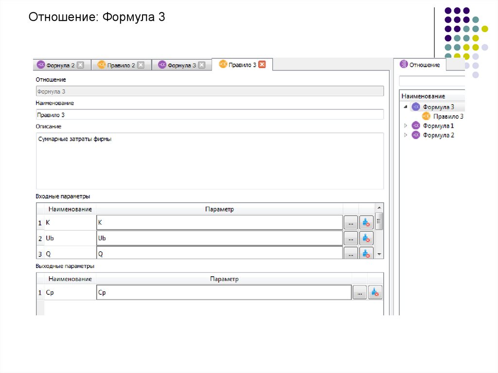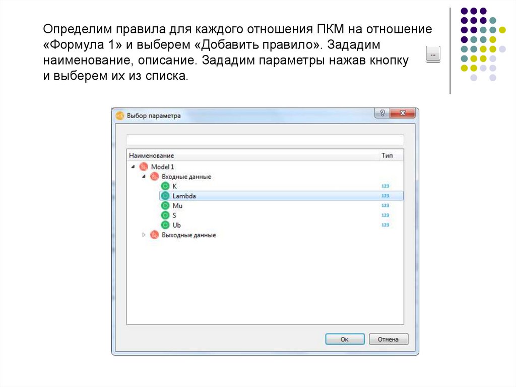Зададим отношения (формулы) для выходных данных, щелкнувмышью по кнопке