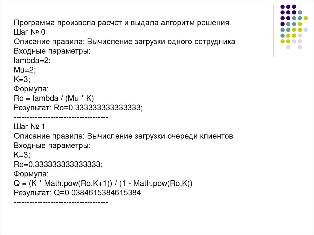 Программа произвела расчет и выдала алгоритм решения.Шаг № 0