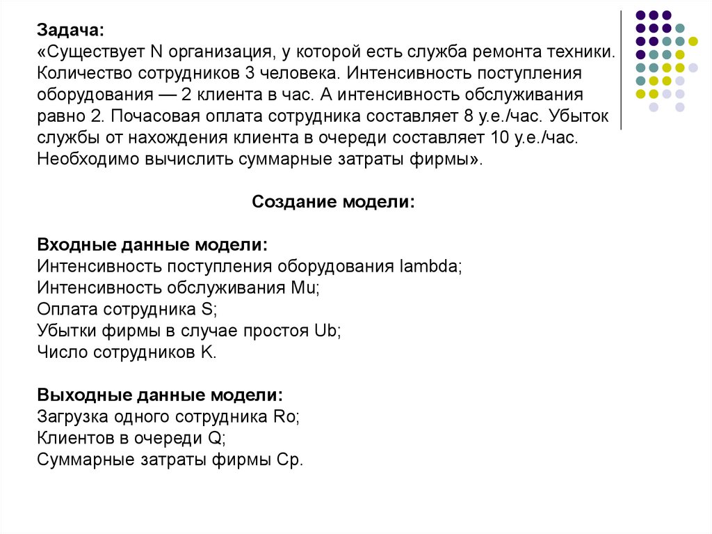 Задача:«Существует N организация, у которой есть служба ремонта техники.