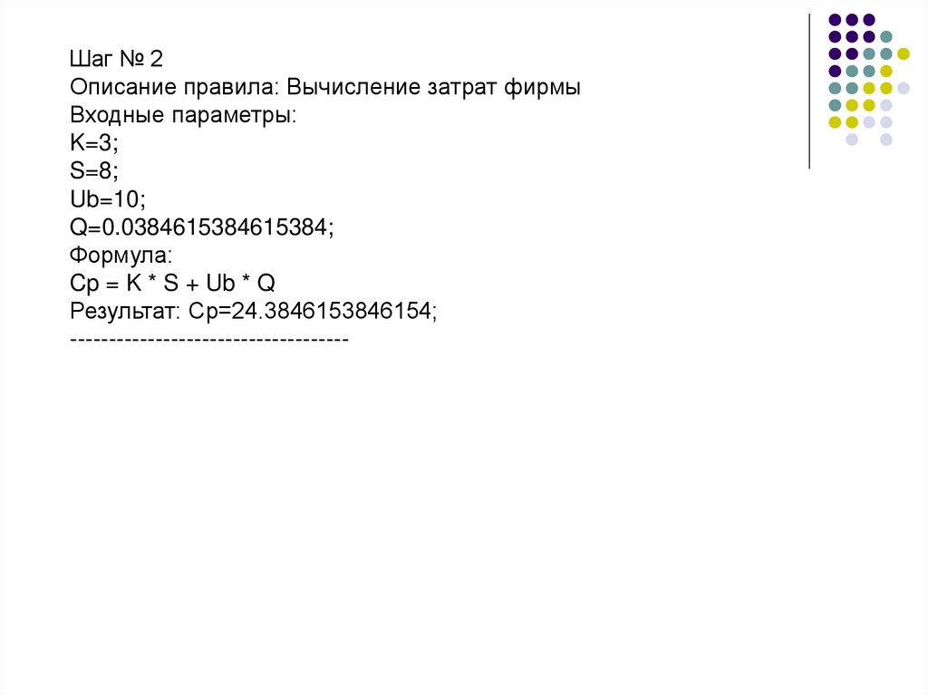 Шаг № 2Описание правила: Вычисление затрат фирмы