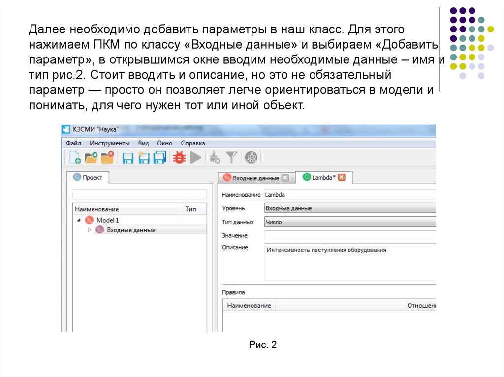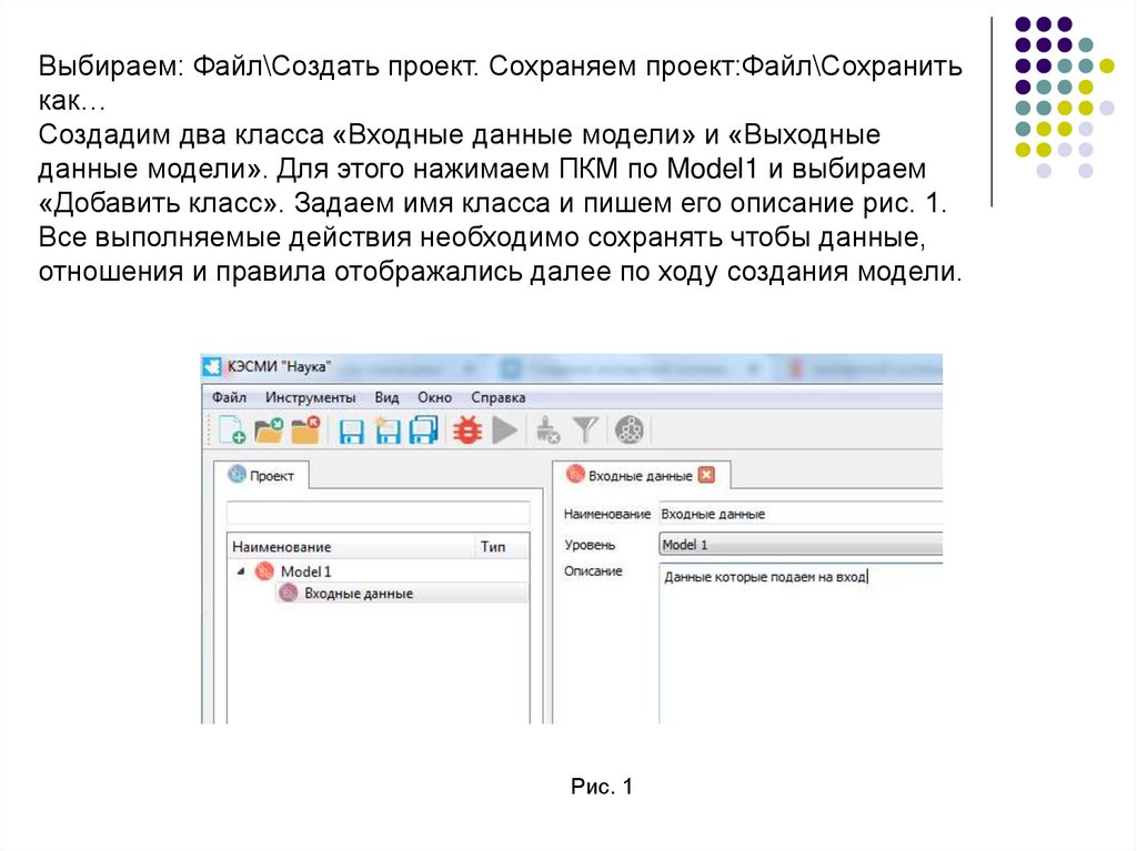«Добавить класс». Задаем имя класса и пишем его описание рис. 1.