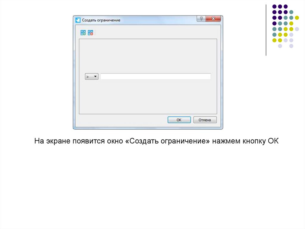 На экране появится окно «Создать ограничение» нажмем кнопку ОК10.