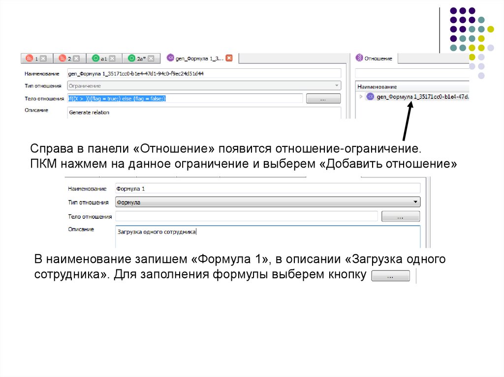 Определим правила для каждого отношения ПКМ на отношение«Формула 1» и выберем «Добавить правило». Зададим