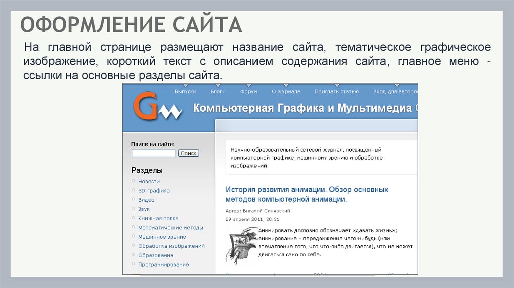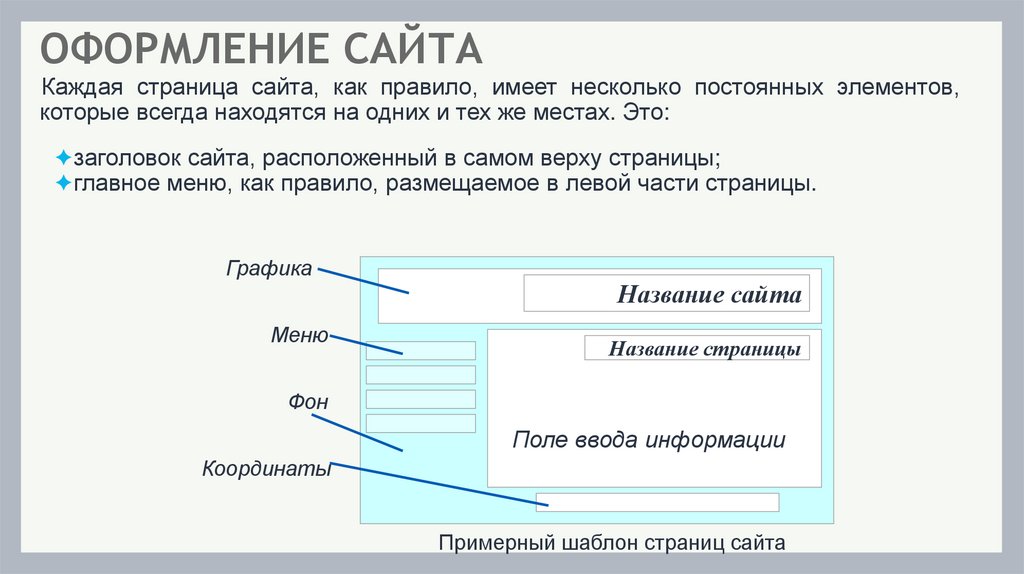 Перечислите основные элементы, размещаемые на страницахсайта.
