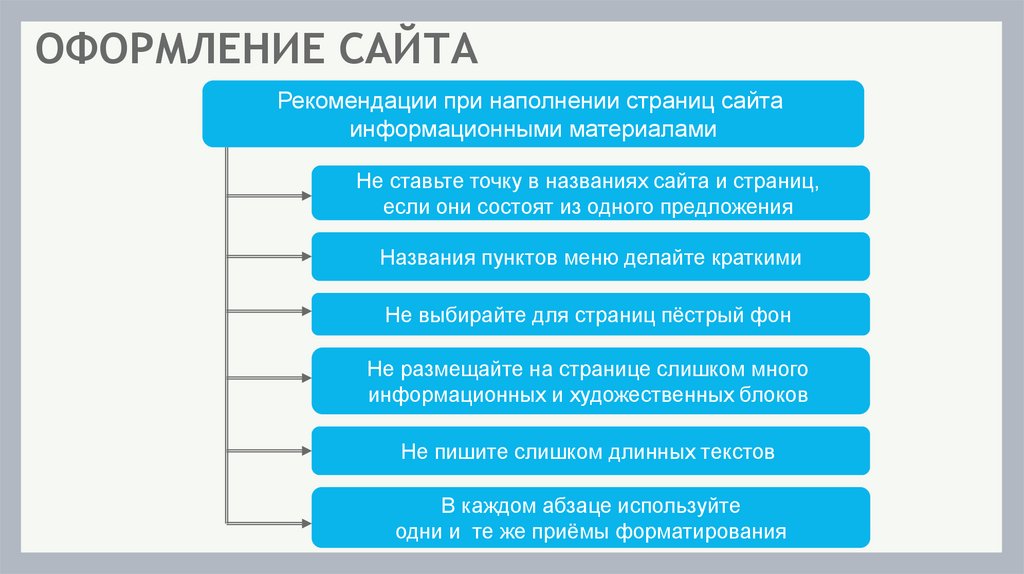 Какие рекомендации следует учитывать при наполнениистраниц сайта информационными материалами?