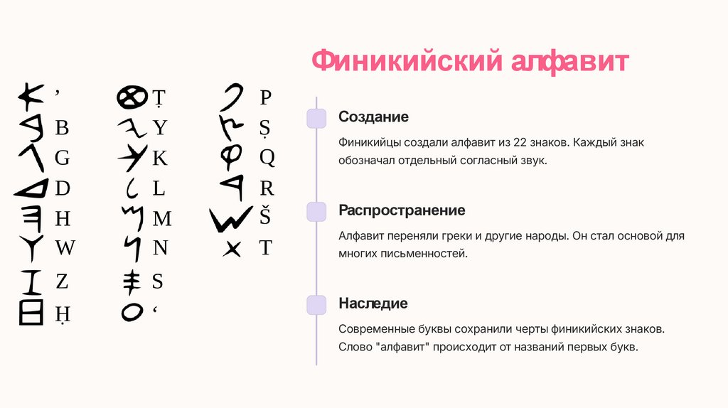 Финикийцы создали алфавит из 22 знаков. Каждый знак