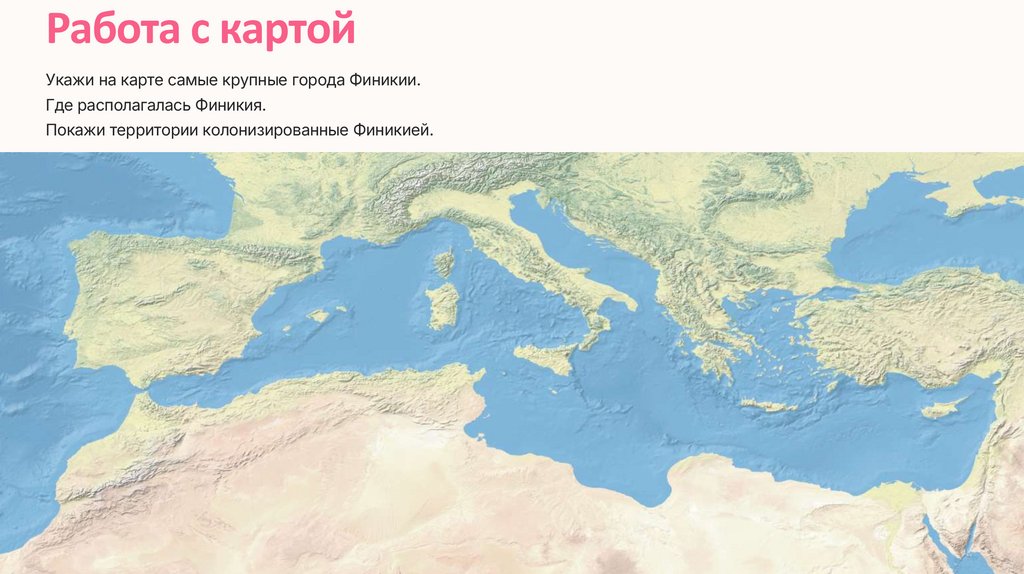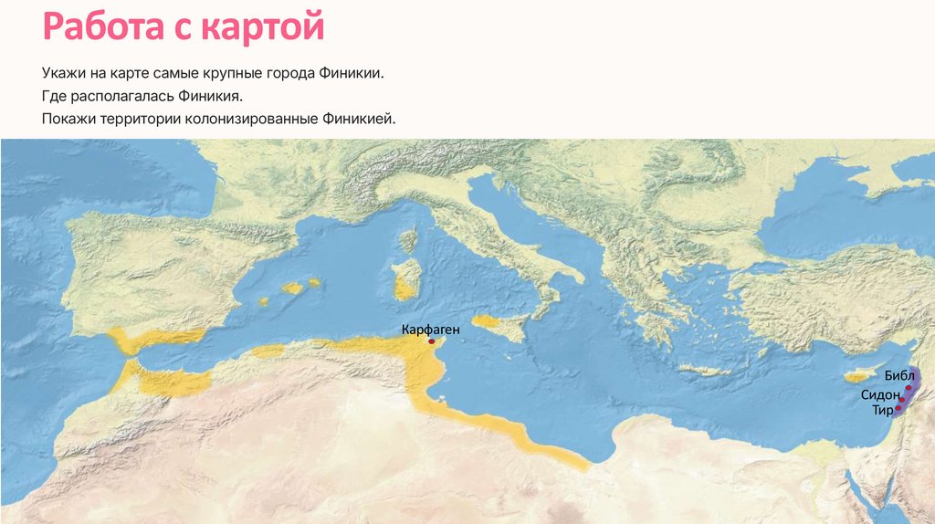 Работа с картойУкажи на карте самые крупные города Финикии.