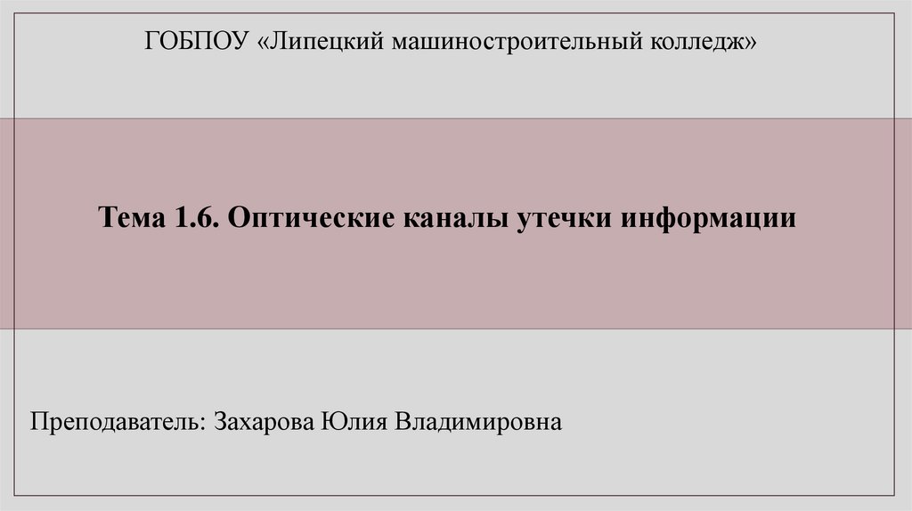ГОБПОУ «Липецкий машиностроительный колледж»Тема 1.6. Оптические каналы утечки информации