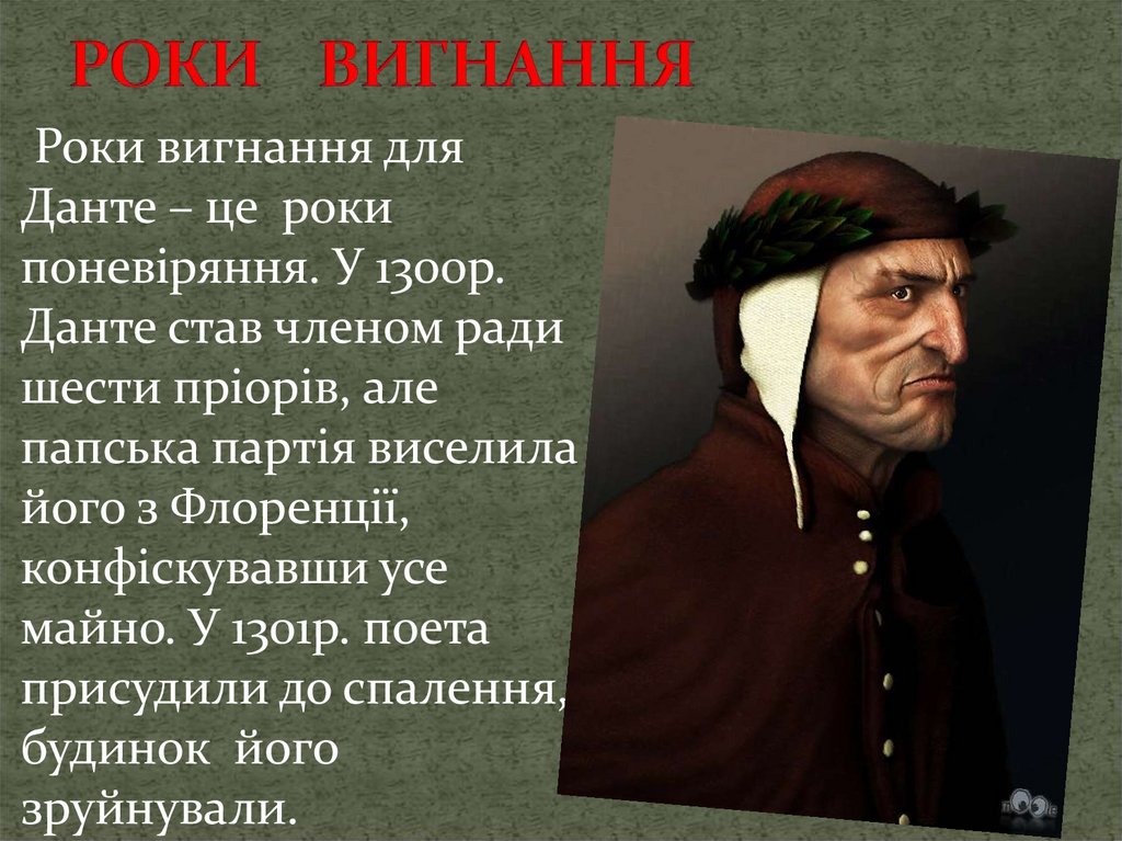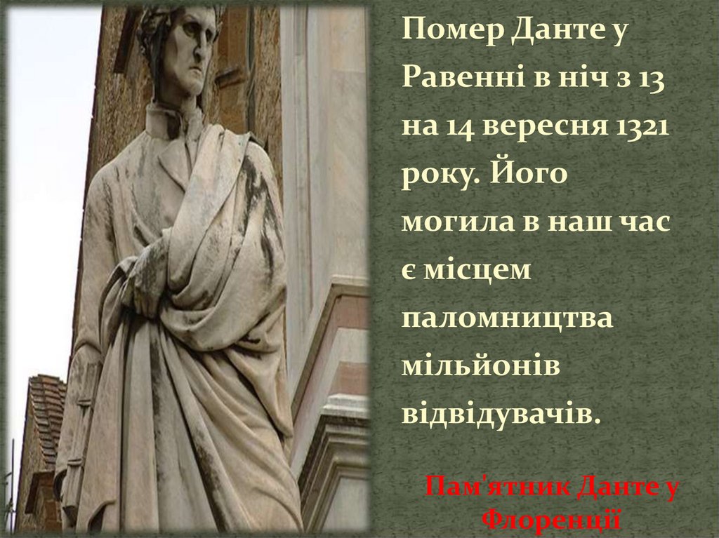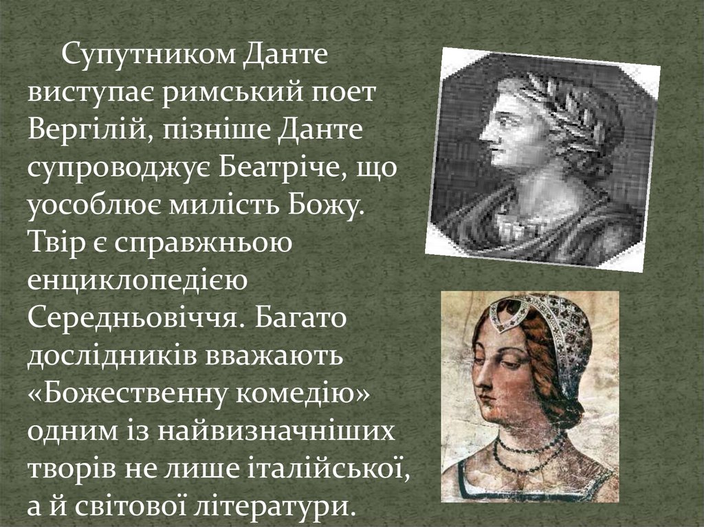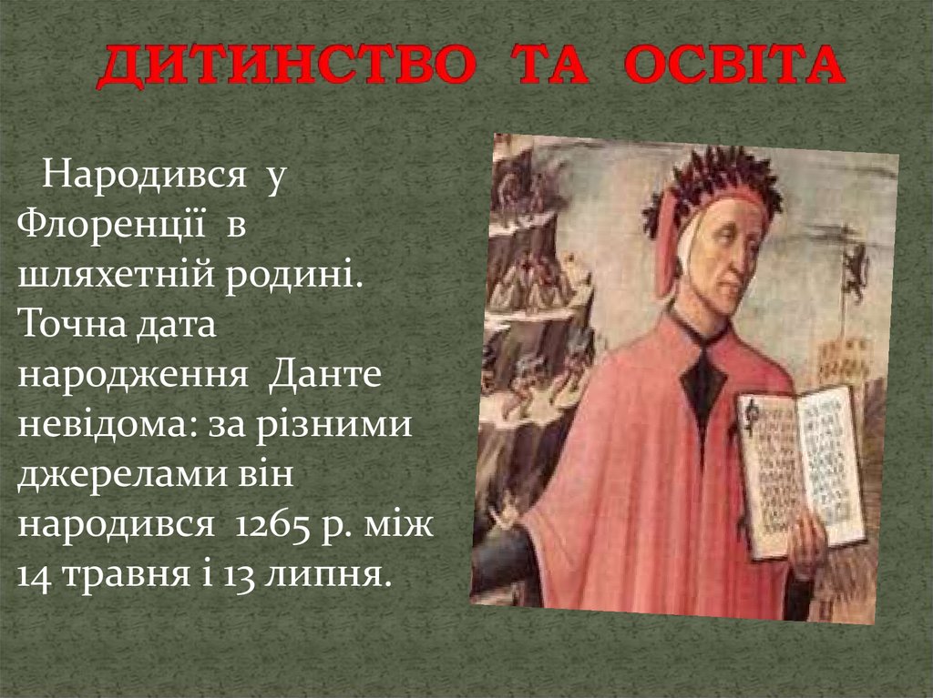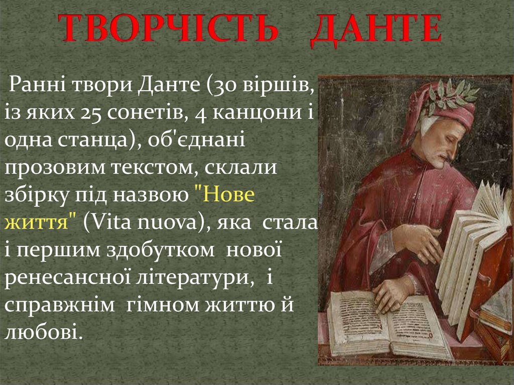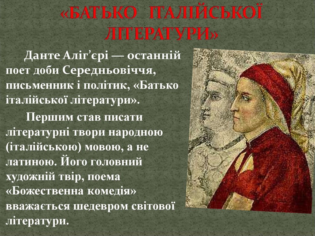 Данте Аліг’єрі — останнійпоет доби Середньовіччя,