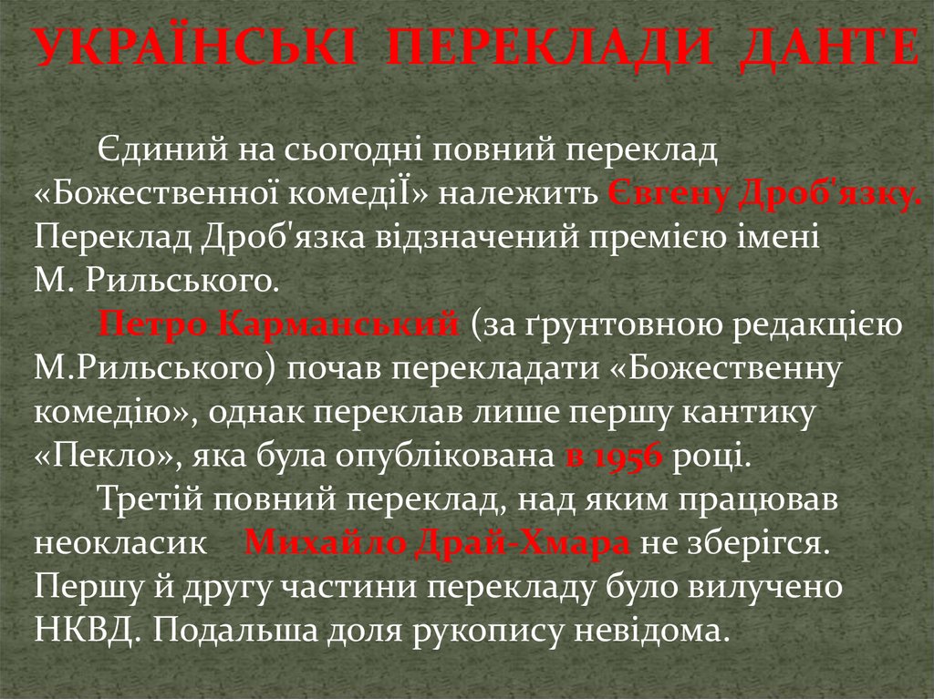 УКРАЇНСЬКІ ПЕРЕКЛАДИ ДАНТЕЄдиний на сьогодні повний переклад