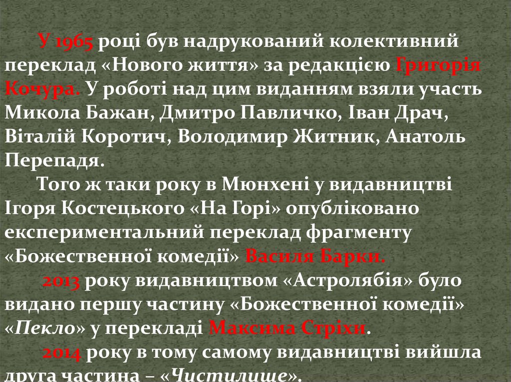 М.Рильського) почав перекладати «Божественну