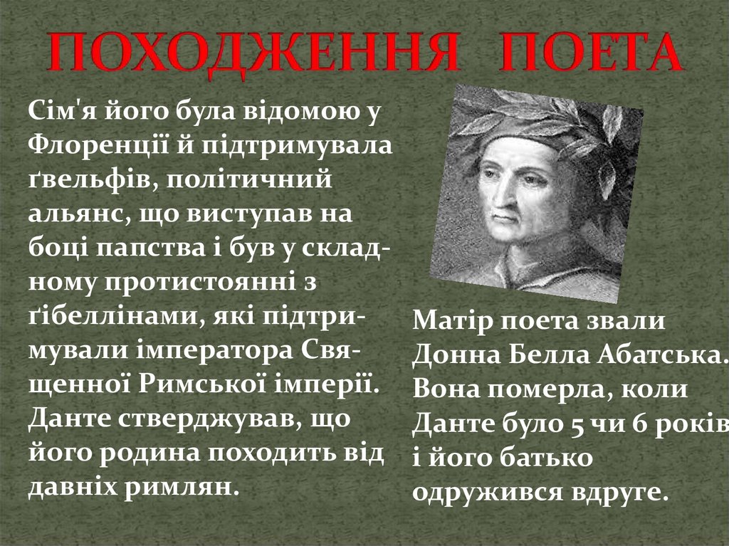 ґібеллінами, які підтриМатір поета звали