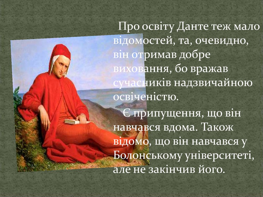 Про освіту Данте теж маловідомостей, та, очевидно,