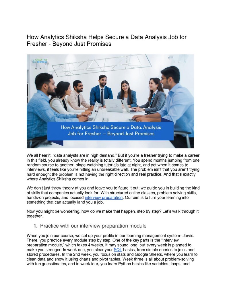 How Analytics Shiksha Helps Secure a Data Analysis Job forFresher - Beyond Just Promises