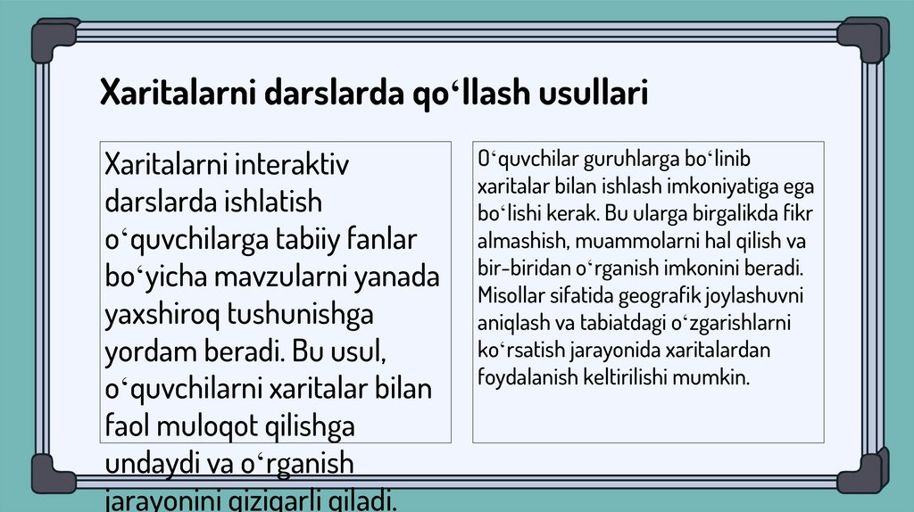 Xaritalarni darslarda qo‘llash usullariXaritalarni interaktiv