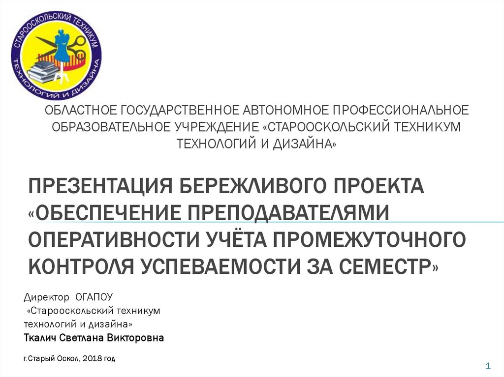1. ПРЕЗЕНТАЦИЯ БЕРЕЖЛИВОГО ПРОЕКТА «ОБЕСПЕЧЕНИЕ ПРЕПОДАВАТЕЛЯМИ ОПЕРАТИВНОСТИ УЧЁТА ПРОМЕЖУТОЧНОГО КОНТРОЛЯ УСПЕВАЕМОСТИ ЗА