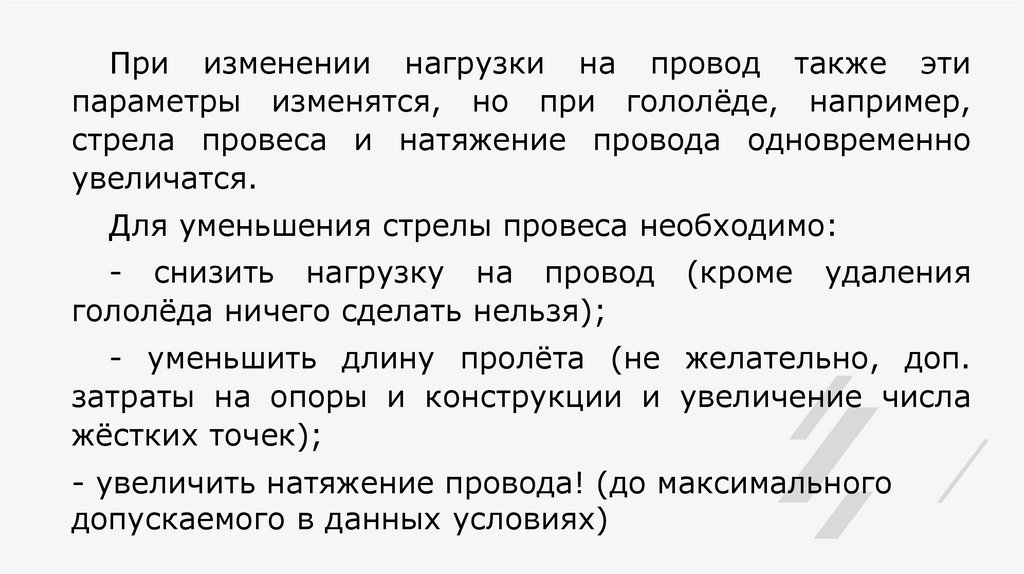 провода, увеличится стрела провеса и уменьшится натяжение провода