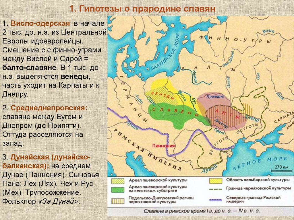 1. Гипотезы о прародине славян1. Висло-одерская: в начале