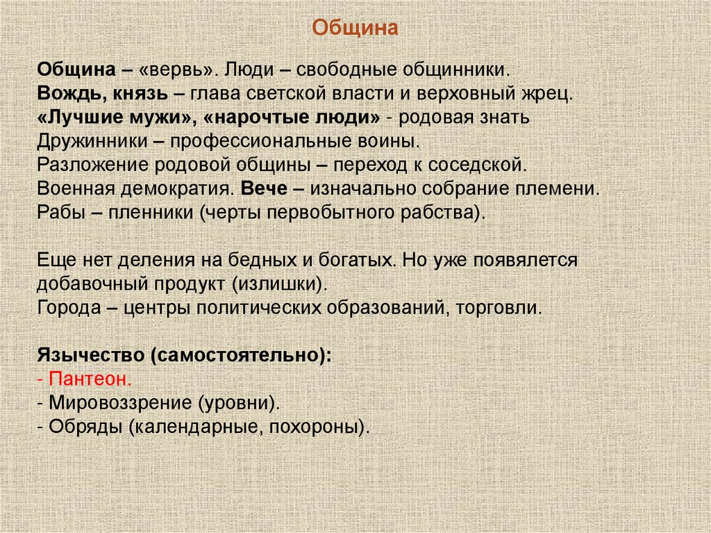 ОбщинаОбщина – «вервь». Люди – свободные общинники.