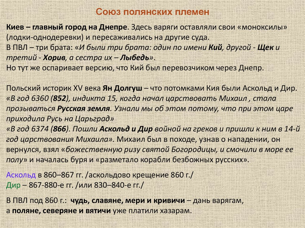 Польский историк XV века Ян Долгуш – что потомками Кия были Аскольд и Дир.