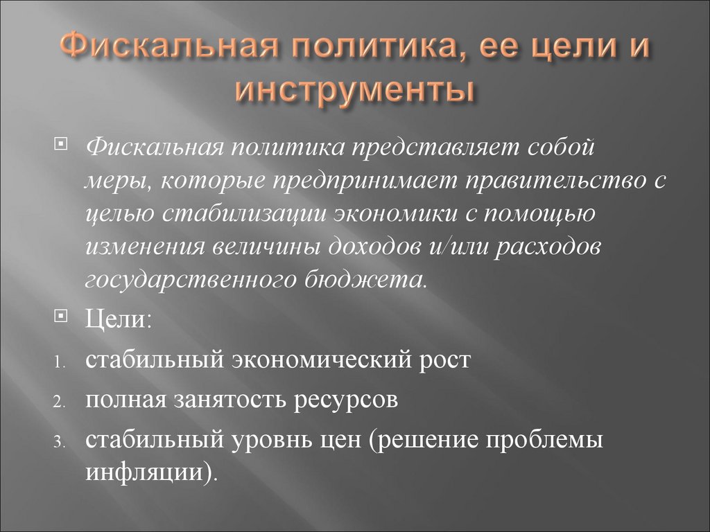 Фискальная политика представляет собоймеры, которые предпринимает правительство с