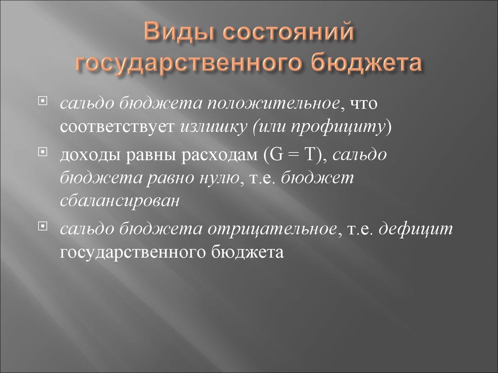 доходы равны расходам (G = Т), сальдо