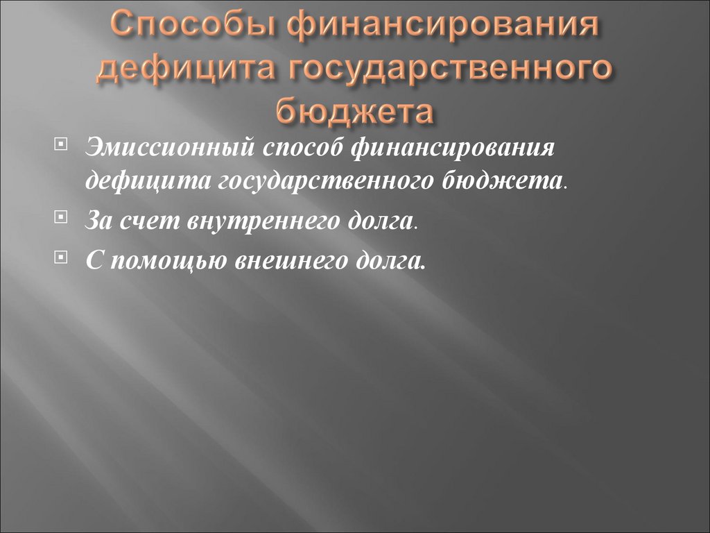 Эмиссионный способ финансированиядефицита государственного бюджета.