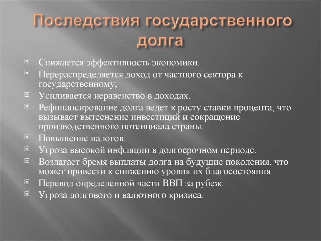 Возлагает бремя выплаты долга на будущие поколения, что