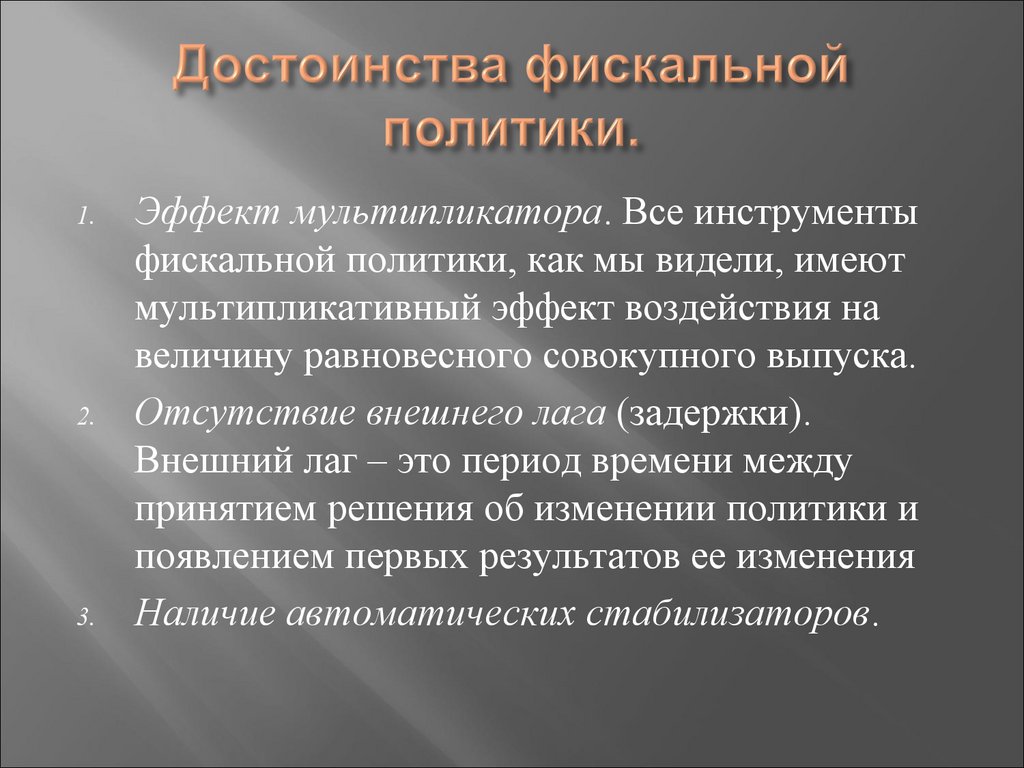 фискальной политики, как мы видели, имеют