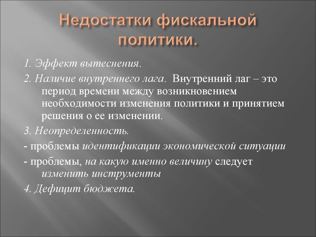 1. Эффект вытеснения.2. Наличие внутреннего лага. Внутренний лаг – это