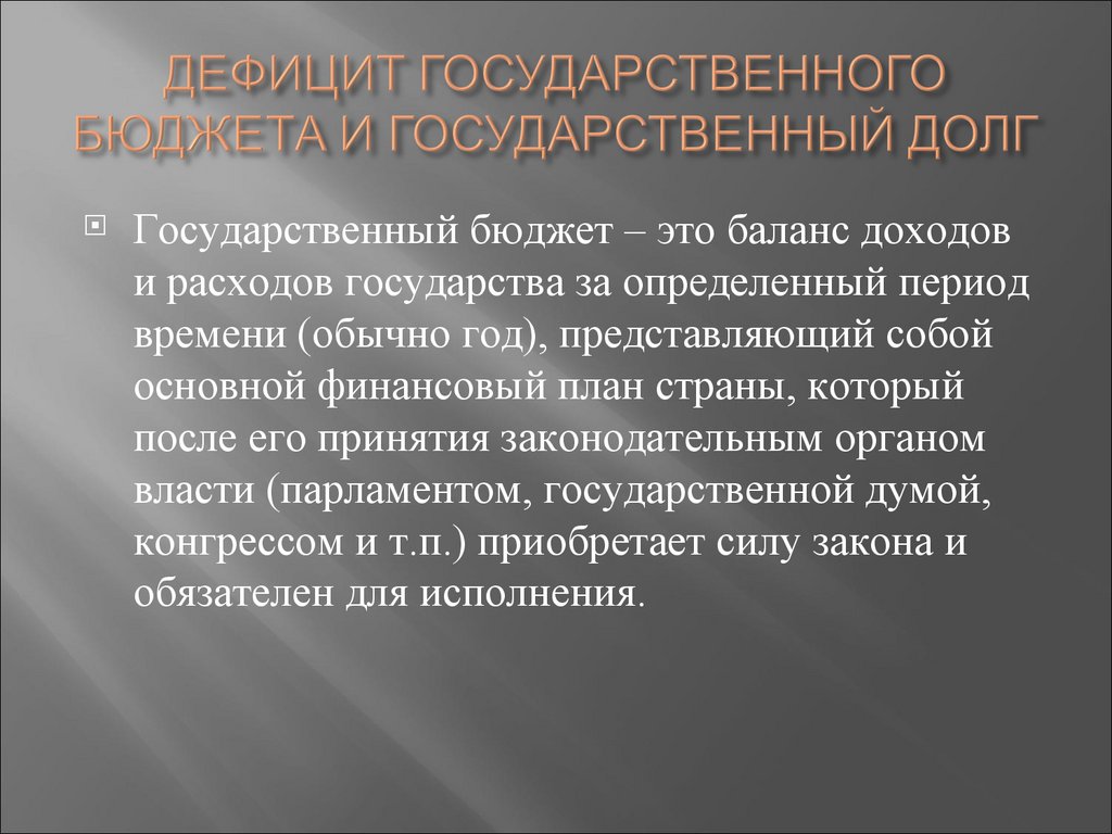 Государственный бюджет – это баланс доходови расходов государства за определенный период